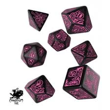 These dice are coloured black as the void in the deep cosmos, with the abhorrent tentacles creeping out to reach you, highlighted by the bright magenta reminiscing the color out of space. The highest face is adorned with the Elder Sign, ideal for a disturbing Lovecraftian setting.