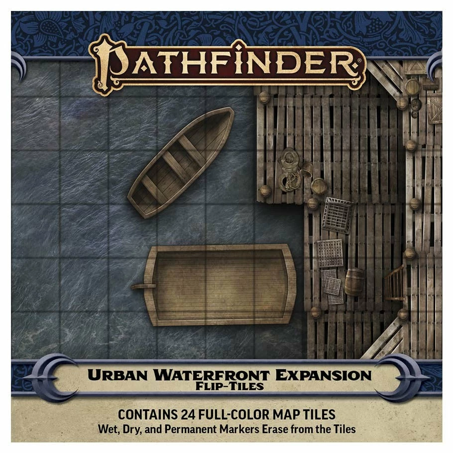 A city’s waterfront is often the heart of its trade, and that makes it the perfect place for smugglers and criminals to hide! Flip-Tiles: Urban Waterfront Expansion provides beautifully illustrated 6” by 6” map tiles that can be used to expand your city’s waterfront with a variety of piers, boardwalks, canals, and lighthouses. Inside, you’ll find 24 richly crafted, double-sided map tiles. This expansion set, along with Pathfinder Flip-Tiles: Urban Starter Set, allows you to create sprawling city maps quickly! So stop your sketching and start your flipping today. The Urban Waterfront Expansion Set includes: Lighthouse Isle, Piers, Boardwalks, Waterfront Alleys, Shoreline, Beacon, Harbor, and Waterways tiles!
