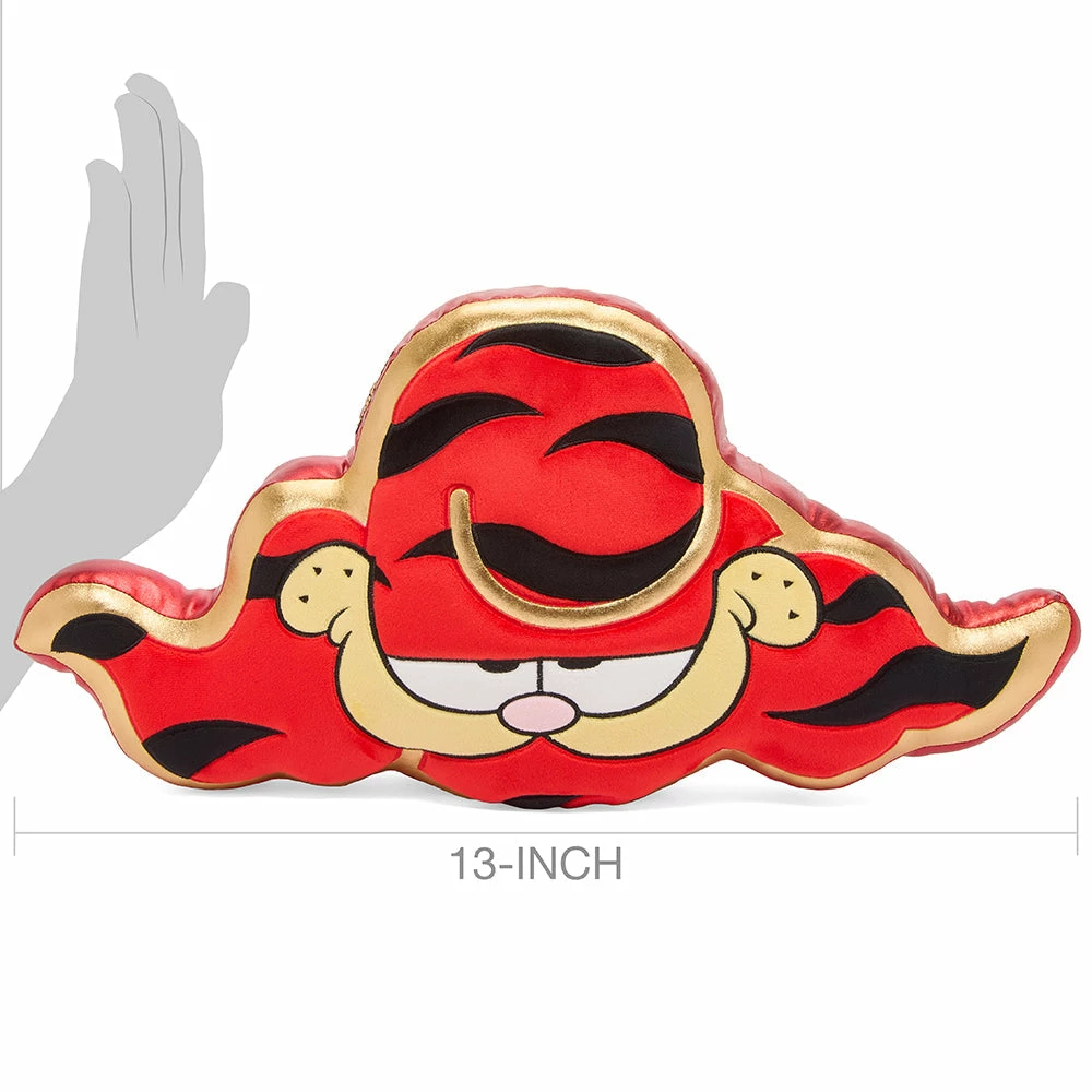 What is a house cat if not a tiny tiger? Or, in Garfield’s case, a not-so-tiny tiger. Celebrating the Year of the Tiger, Kidrobot presents the Garfield Year of the Tiger 13″ Cloud Plush that’s ready to float into your life. Made of soft metallic fabrics in lucky red and gold, it’s the perfect pillow or cushion for anywhere in the house. The sagely smiling and superbly striped Garfield graces the front, and the reverse features an embroidered floral pattern on metallic gold.