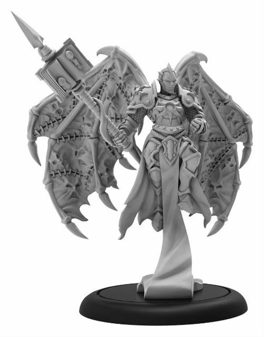 When the infernals invaded and the gods of Caen began to unleash their Archons into the mortal world, it is no surprise that the grymkin viewed the Menite Archon with equal measures of contempt and sadistic curiosity. As the forces of Menoth were embattled, protecting the souls of the faithful from the infernals, the grymkin managed to capture a few Menite Archons and drag them down into their nightmarish reality. Time passes differently on the other side, so no one can be sure how long these Menite Archons truly suffered for all that`s known is what emerged after: twisted mockeries of Menoth, clad in blasphemous armor, reading heretical versions of the Canon of the True Law, and borne aloft on wings of screaming flesh.
