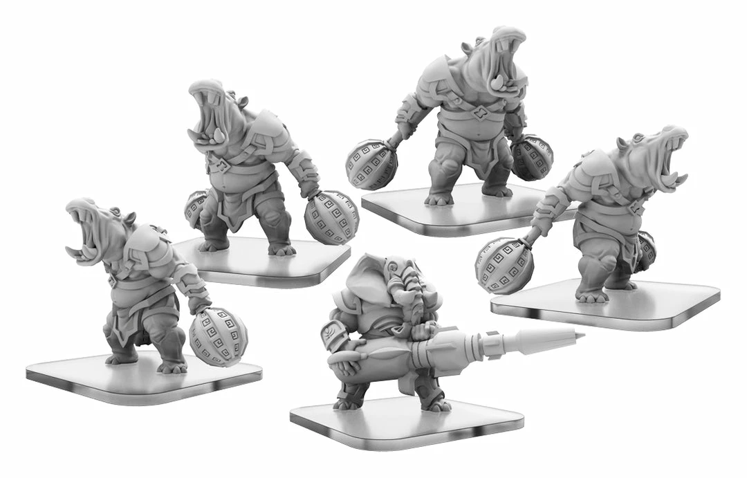 This blister includes units that can be added to any Protectors force. Bashers are humans infused with hippopotamus DNA. These stout warriors Dual Attack with massive melon hammers, Pressing On after each swing to take new territory. Blasters are Elephant hybrids with extensive training in commanding their fellow mutates. They Lead from the Front, and the trumpeting commands they call out send their allies Stampeding toward the enemy.