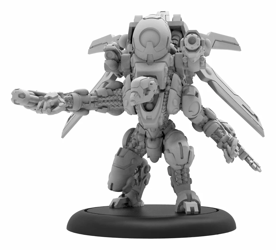 Flying over the battlefield like bloated, black-steel insects bristling with malefic firepower, the Aeternus Continuums Nemesis warjacks are a terrifying sight to behold. Though clumsy on land, these machines are capable of achieving incredible speeds in the air. The Nemesis warjacks are relatively lightly armored to decrease weight and enable flight. To compensate, they are equipped with potent Arc fields that protect them from ranged and arcane attacks.