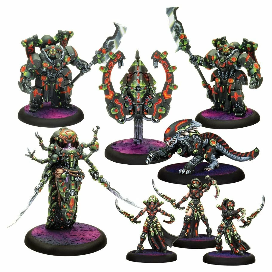Dwelling in vast chambers within the Aeternus Continuum’s greatest temple complexes, the Divine Tempests are the Champions of the Terminus Cabal. These apocalyptic oracles of destruction are each attended to by a Fury-channeling Talon squad and defended by a pair of massive Synteriuns. The Talons are further augmented with the addition of a Relikon, a powerful mechanikal attachment specialized in Arc and Cypher manipulation. Accompanying the Cabal is the Nekosphynx solo, a stealthy and mechanikally enhanced feline hunter capable of short leaps through time and space.