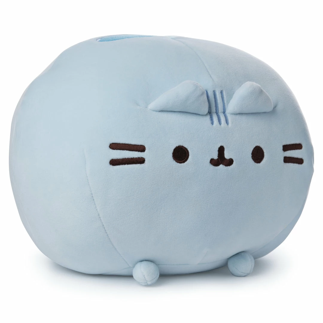Pusheen is the snack-loving cat who loves to go on adventures with friends like Sloth, Stormy, Pip and Cheek in her popular webcomic with over 10 million social media fans! The new Squisheen collection has uniquely elastic fabric that makes her extra squishy inside and super soft outside! This 11″ pastel blue Squisheen round features Pusheen’s signature smile and a new shape ready for squishing! Plush material is surface washable and suitable for ages one and up.
