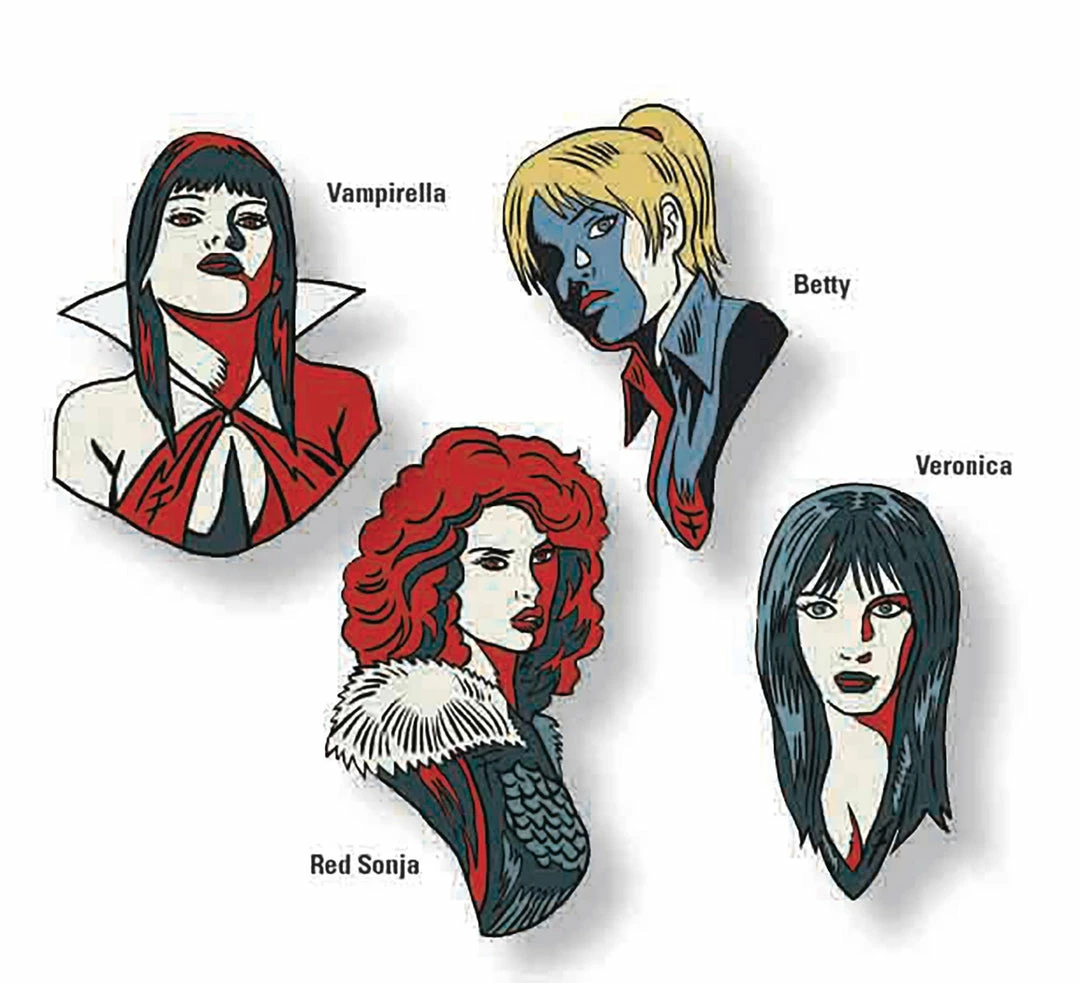 Celebrating our very first crossover event with the Riverdale universe, Dynamite presents a limited-edition enamel pin set featuring the stars of Red Sonja & Vampirella Meet Betty & Veronica. Each 1.5″ diameter pin is designed by Francesco Francavilla, based on his amazing cover artwork from the first issue of the series.