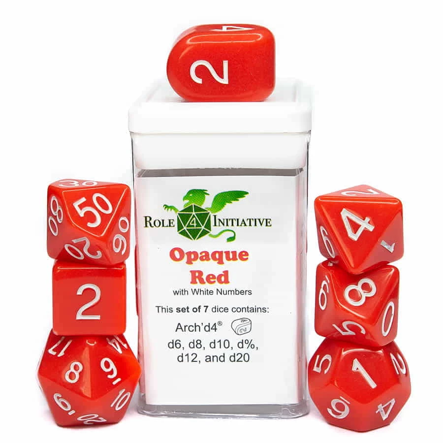 Sets of 7 include Arch’d d4, d6, d8, d10, d%, d12, and Balance’d d20.