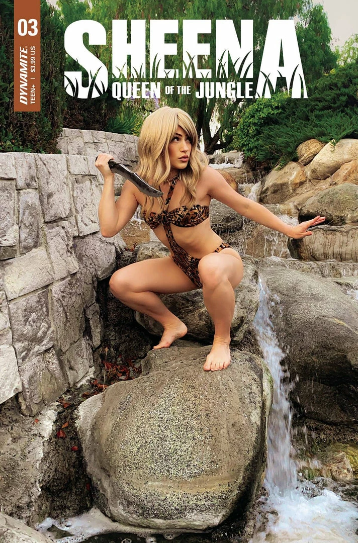 “The Queen of the Jungle Returns! Featuring an all-star creative team and the most amazing roster of cover artists this side of the jungle! The thrilling adventures combines the classic elements of the legendary character along with a modern sensibility that will make it the perfect debut for fans new and old! And lookit those covers: Linsner! Parillo! Besch! Suydam! Cosplay! Sheena faces the rogue beast that may – or may not – be responsible for all the death and destruction in the Mega-Park. But, how can she trust the very people that sent her in? short answer: she can’t, making the danger both man and animal-made! Oh, and they maty be coming after her from the spirit world as well! Jurassic Park meets Predator meets The Hunger Games. Sheena is Queen of all. ”