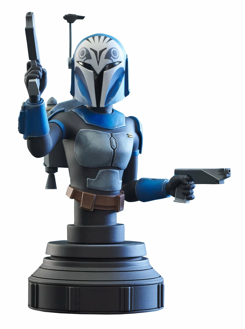 A Gentle Giant Ltd. release! The Mandalorian leader is captured in her animated look in this all-new 1/7 scale resin bust. Depicting Bo-Katan Kryze with her dual pistols in hand, this bust also comes with both helmeted and unhelmeted heads, for two dynamic display options. Measuring approximately 6 inches tall, this bust is limited to 3,000 pieces, and comes packaged in a full-color window box. Designed by Barry Bradfield, sculpted by Paul Harding!