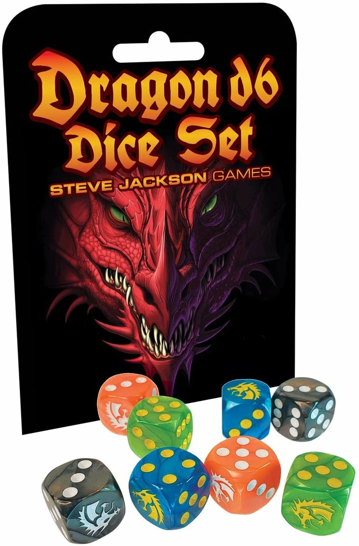 In a forgotten cave in a far-away land, we found a dragon’s egg. Nurtured on a bed of smoldering embers, it finally hatched . . . and these brightly colored dice spilled forth!