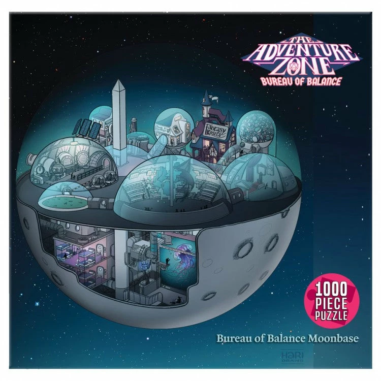 It’s more than a Moonbase- it’s a visual tour of The Adventure Zone: Balance Arc. A 1,000-piece puzzle that features The Moon Base from The Adventure Zone: Bureau of Balance game. Illustrated by Hari Conner.