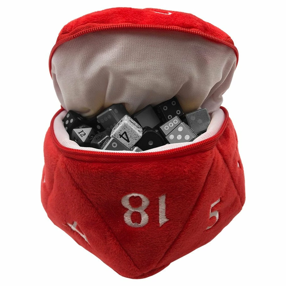 Need +5 to dice hoarding? We’ve got you covered with a new dice bag based on our ever-popular jumbo D20 plush! The zippered center pocket holds up to 50 dice, while a carabiner-style hook keeps your dice securely at your side. This Plush D20 Dice Bag measures approximately 6.5 inches in diameter, and is the perfect accessory for any RPG adventurer or dice enthusiast!