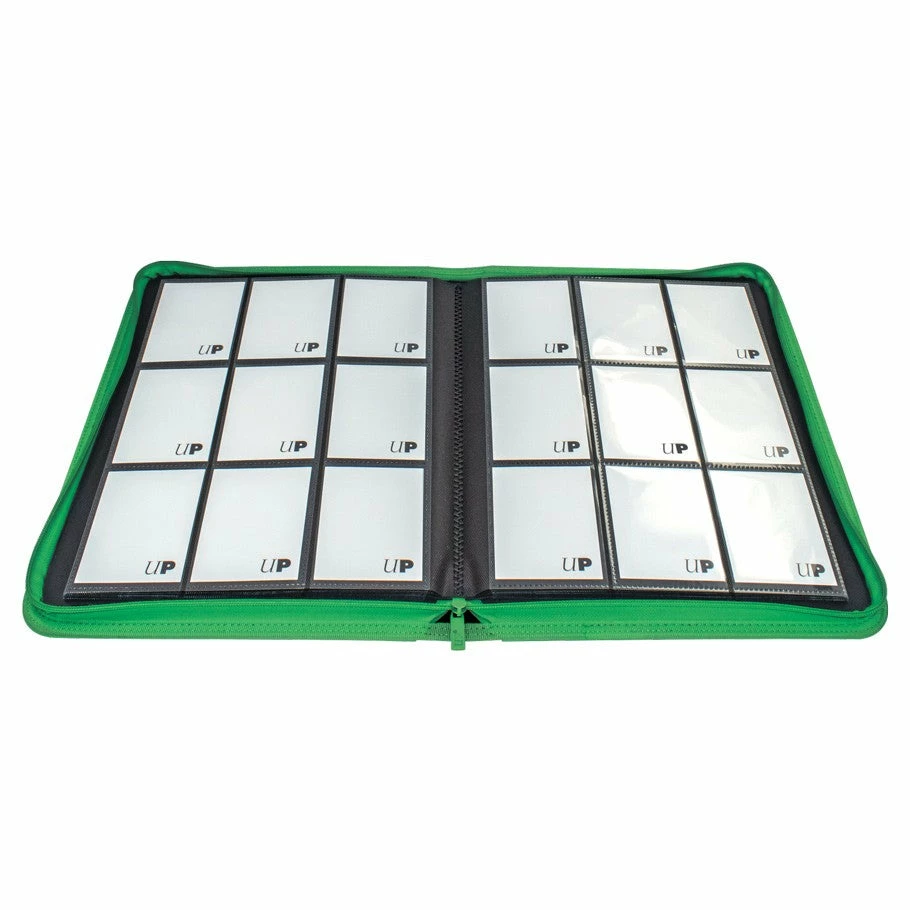 The Vivid 9-Pocket Zippered PRO-Binders are designed for collecting and organizing your favorite trading cards. Each binder features a padded leatherette cover with a matching zipper closure and pull tab. After unzipping the binder, you’ll find twenty 9-pocket pages sized for standard trading cards in side-loading pockets, allowing you to store up to 360 cards in Deck Protector sleeves. Pages feature a low-friction black backing, creating a separation between the front and back pockets as well as providing cards a classic framed look. Every PRO-Binder is made with acid-free, non-PVC materials to ensure your cards are protected and preserved.