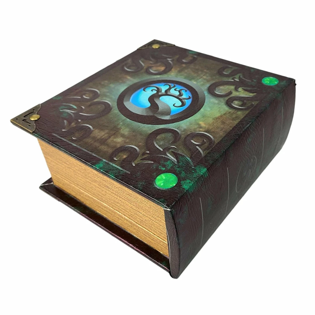 Introducing the Grimoire Pro Tour Deck Box by Wizardry Foundry, a deck / cube storage system designed to hold up to 400 cards. Made from engineered wood, the Grimoire offers great protection without compromising its portability. The outside cover material looks and feels like leather. Each edition has a unique cover art with fantasy game world theme.