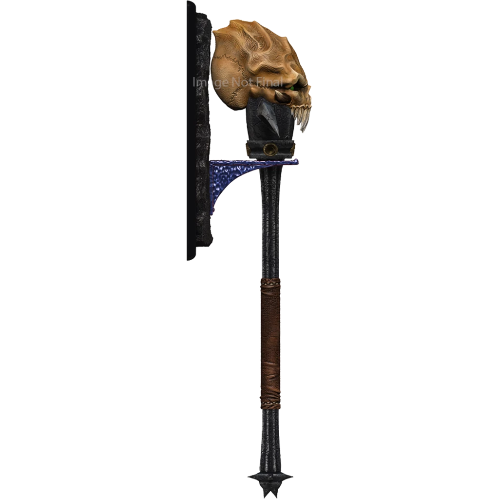 Life-sized replica of the infamous skull-topped scepter wielded by Orcus, Demon Lord of the Undead. ~30″ in overall length the Wand includes a sturdy wall-mounted display.