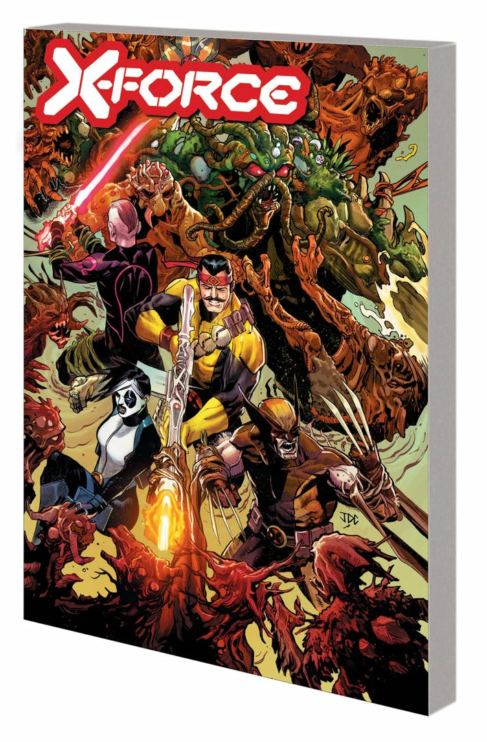 Fear of a green planet! As the Reign of X expands outwards, Beast plants the seeds – and X-Force pulls the weeds. But not if Man-Slaughter has anything to say about it! When the genetic makeup of the shambling soldier is used to infect and control an army of unwilling agents, X-Force must get to the root of the problem! Meanwhile, Beast’s best-laid plans invite a threat close to the heart as the secret works of Mikhail Rasputin are at last revealed! If Black Tom can’t stop this insidious invasion, the consequences go beyond mere death. Time for Colossus to step in! Plus: A sea change for Kid Omega and Phoebe Cuckoo! And Wolverine takes on the deadliest waves in the world, and it will take more than a healing factor to survive this thresher! Collecting X-FORCE (2019) #21-26. Parental Advisory